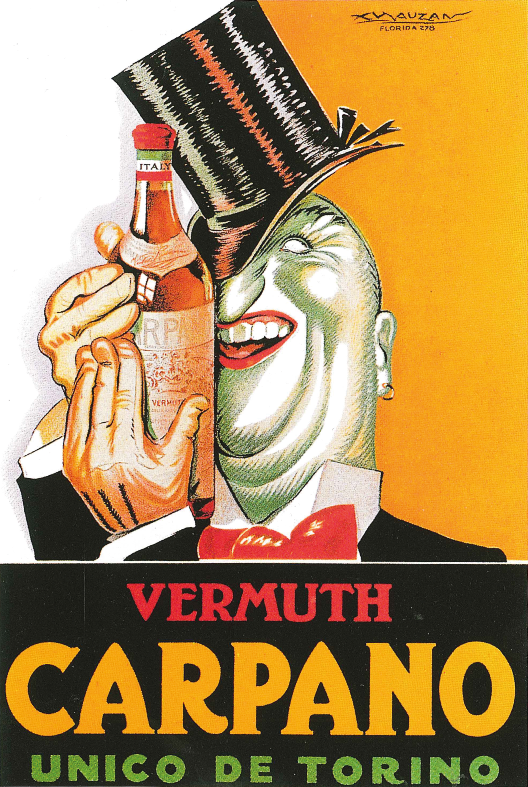 Manifesto pubblicitario della campagna affissioni per Carpano realizzata da Achille Mauzan negli anni ’30.